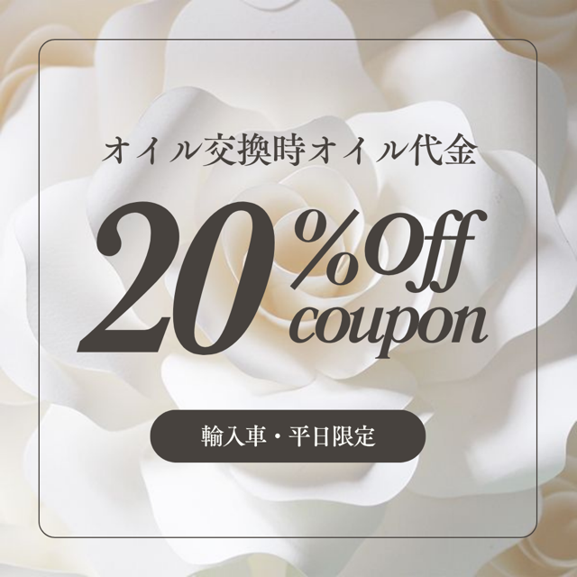 輸入車ユーザー様のオイル交換時のオイル代金を20%オフとさせていただきます。